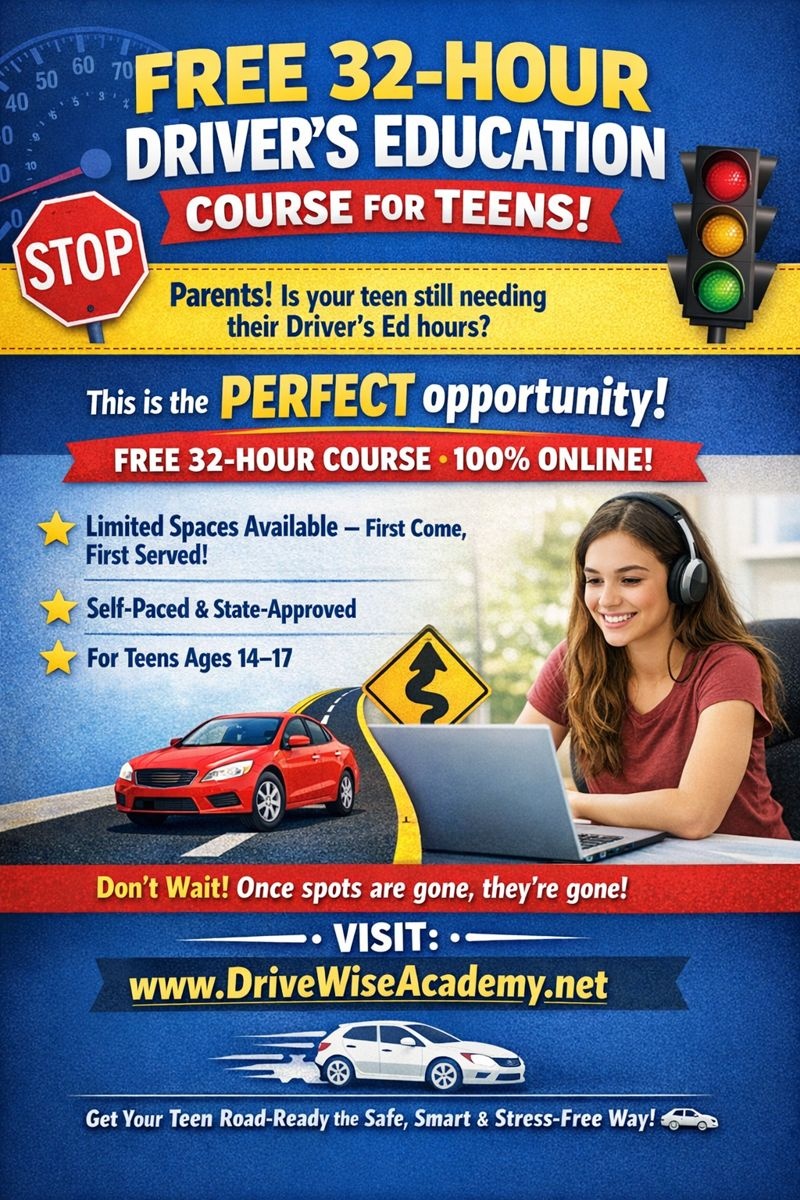 Is your teen ready to start their driving journey? DriveWise Academy is offering a 32-hour Driver’s Education course designed specifically for teens who need to complete their required classroom hours.